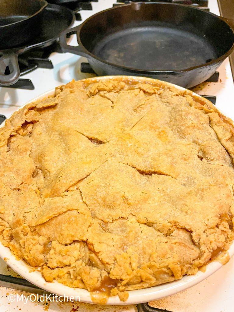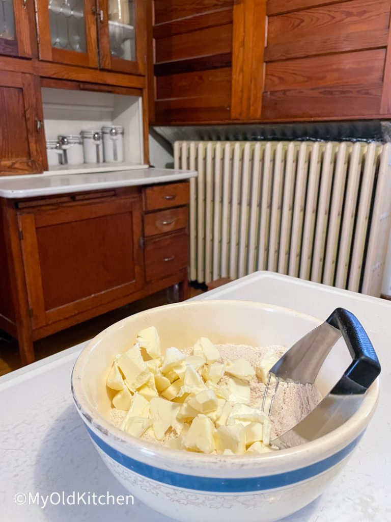 My grandma was…and now mom is….a master of this art of butter pie crust. My earliest memories are of my Slovak grandma grinding flour, kneading it on the counter while we sat on the stools, and then pulling caramel pecan rolls out of the oven while we all turned into monsters and inhaled them. I love fresh flour, kneading bread, and pastry. My Old Kitchen smells like childhood and happy things.